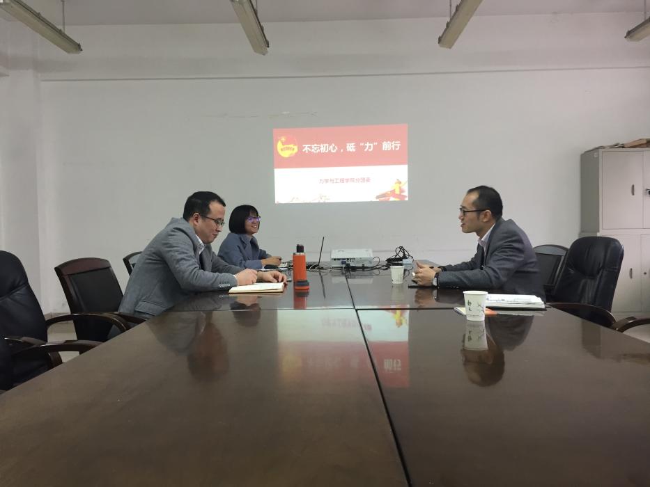 12月1日下午16时,校团委廖军书记、组织部长李娜老师一行来力学与工程学院就学院团委工作进行调研。学院党委张军琪副书记、学院团委副书记、本科生辅导员杨婧老师参加了调研。