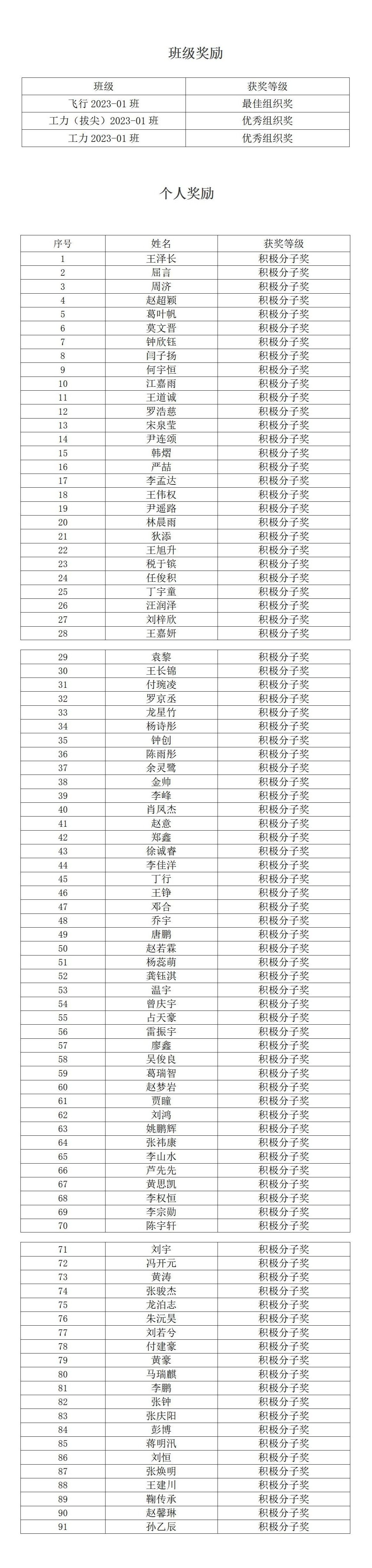 现对2023-2024学年秋季学期早晚自习出勤进行表彰奖励,旨在鼓励学生、班级能够弘扬学校“双严”传统,形成良好的班风、学风。希望获奖的同学能够戒骄戒躁,保持努力,发挥先锋模范引领作用,未获奖的同学中继续努力,争取取得更好的成绩!
