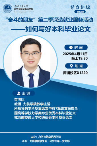 为加强对2025届本科毕业论文的管理,有力推进“奋斗的朋友”第二季深造就业服务活动,4月11日晚上19:30,学院邀请学院教学主管苗鸿臣教授为泥视频