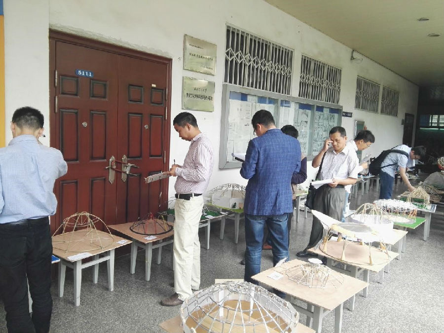 “力学创新实验”大赛已经成功举办八届,旨在提高大学生创新设计能力、操作能力及工程实际应用能力,已成为我校大学生中最具影响力的竞赛之一,历届竞赛都吸引大量的学生参与,成果丰富。本届大赛主题为“弦支穹顶结构模型设计与制作”,大赛注重作品结构创新性、力学原理合理性,同时考察作品的外观工艺等方面。经过实物展示、专家评价作品的制作工艺、力学性能评价、作品介绍、分组答辩和专家综合评审,保障了评审结果的公正性。