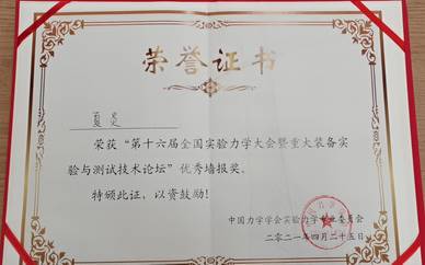 夏炎博士获第16届全国实验力学大会优秀墙报奖