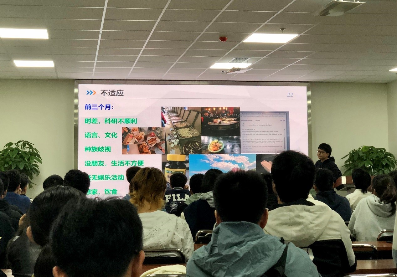 在分享给海外求学经历过程中,王老师表示,在国外求学时,自己对于祖国的感情更加深了。最后,他为大家提供了一些求学和职业发展的建议,主要包括:1.结合所学专业规划后期的发展,做最充分的准备,不要害怕困难;2.珍惜时光,提升自己,研究生要埋头科研、多出成果等。