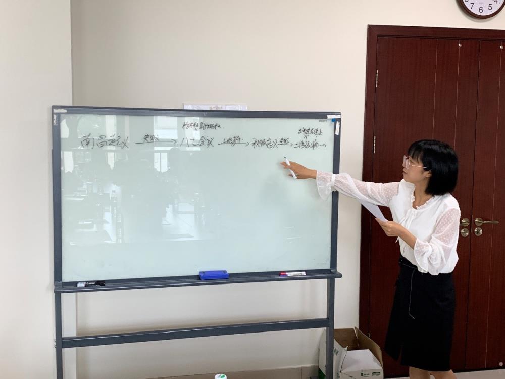本次擂台赛采用“原原本本”讲述的方式,要求在学习和讲述中不使用电脑、手机及PPT,而是用白板黑字这种原汁原味的方式讲述自己对党史的体会和心得,让自己所讲的党史更加深入人心。本次活动共有三位主讲人—力学学院团委书记杨婧、数学学院团委书记邓思然、物理学院团委书记门满洲,内容都选自《中国共产党简史》第二章。