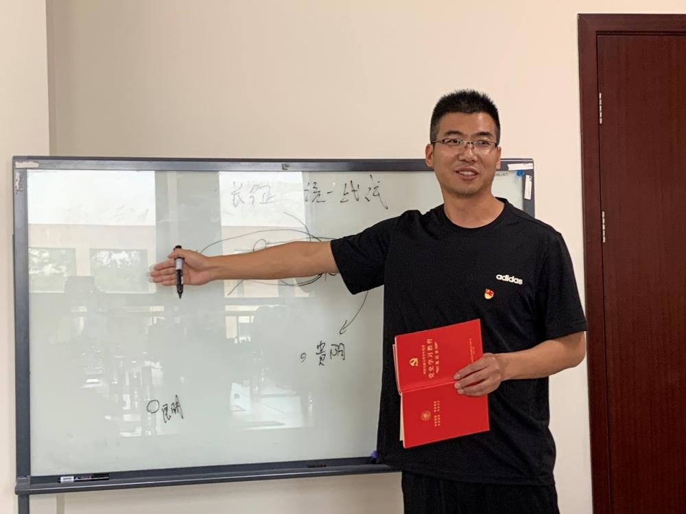 门满洲在武装起义和土地革命的基础上,带领大家重温了长征历史和抗日民族统一战线的建立。他首先通过讲故事、画作战示意图的方式带领大家重温了湘江战役、遵义会议,四渡赤水、巧渡金沙江、强渡大渡河、飞夺泸定桥,突破腊子口、直罗镇大捷、会宁会师等大事件,讲解了气吞山河的长征,分享长征的意义,号召大家积极响应习近平总书记的号召,每一代人都要走好自己的长征路;其次,门满洲从表明自身立场和联合社会各界力量两个方面,讲解了中国共产党如何建立抗日民族统一战线;最后,他总结了中国共产党在十年内战中积累的宝贵经验和精神财富。