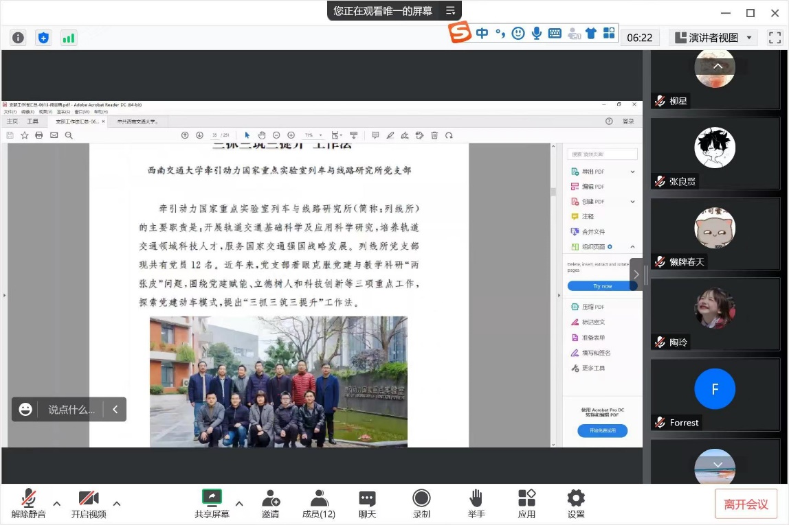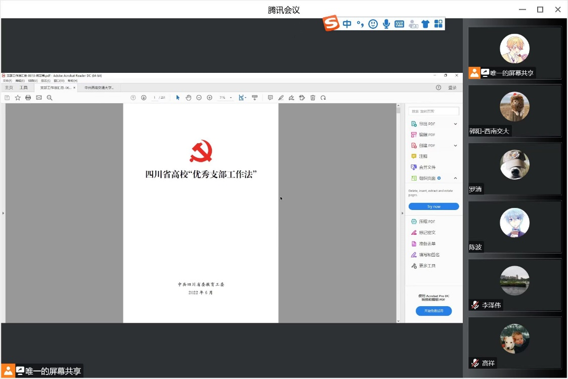 研究生第二党支部开展线上专题学习活动,学习内容为《四川省高校“优秀支部工作法”》部分节选内容,学习活动由支部书记杨宇康同志主持。