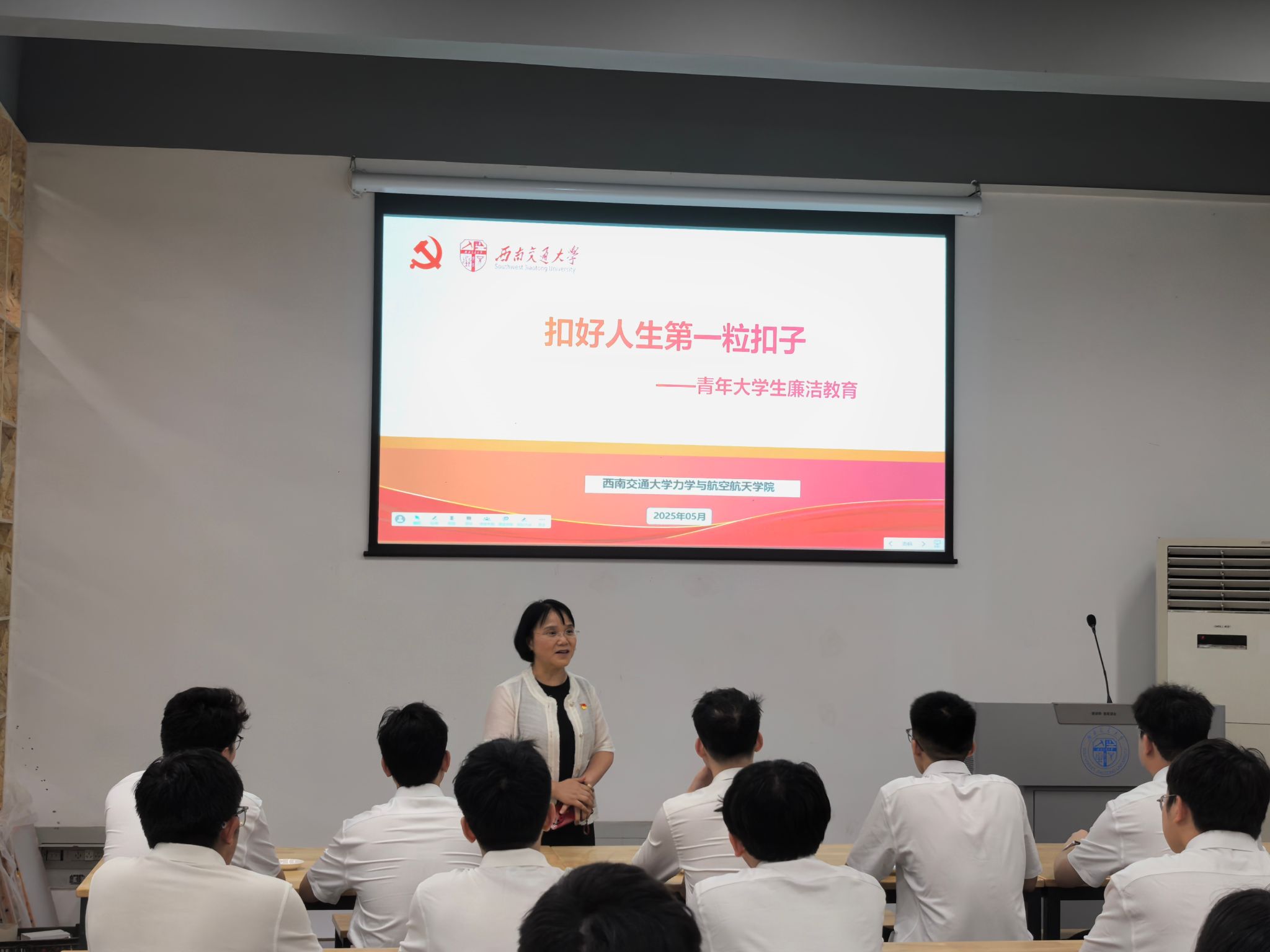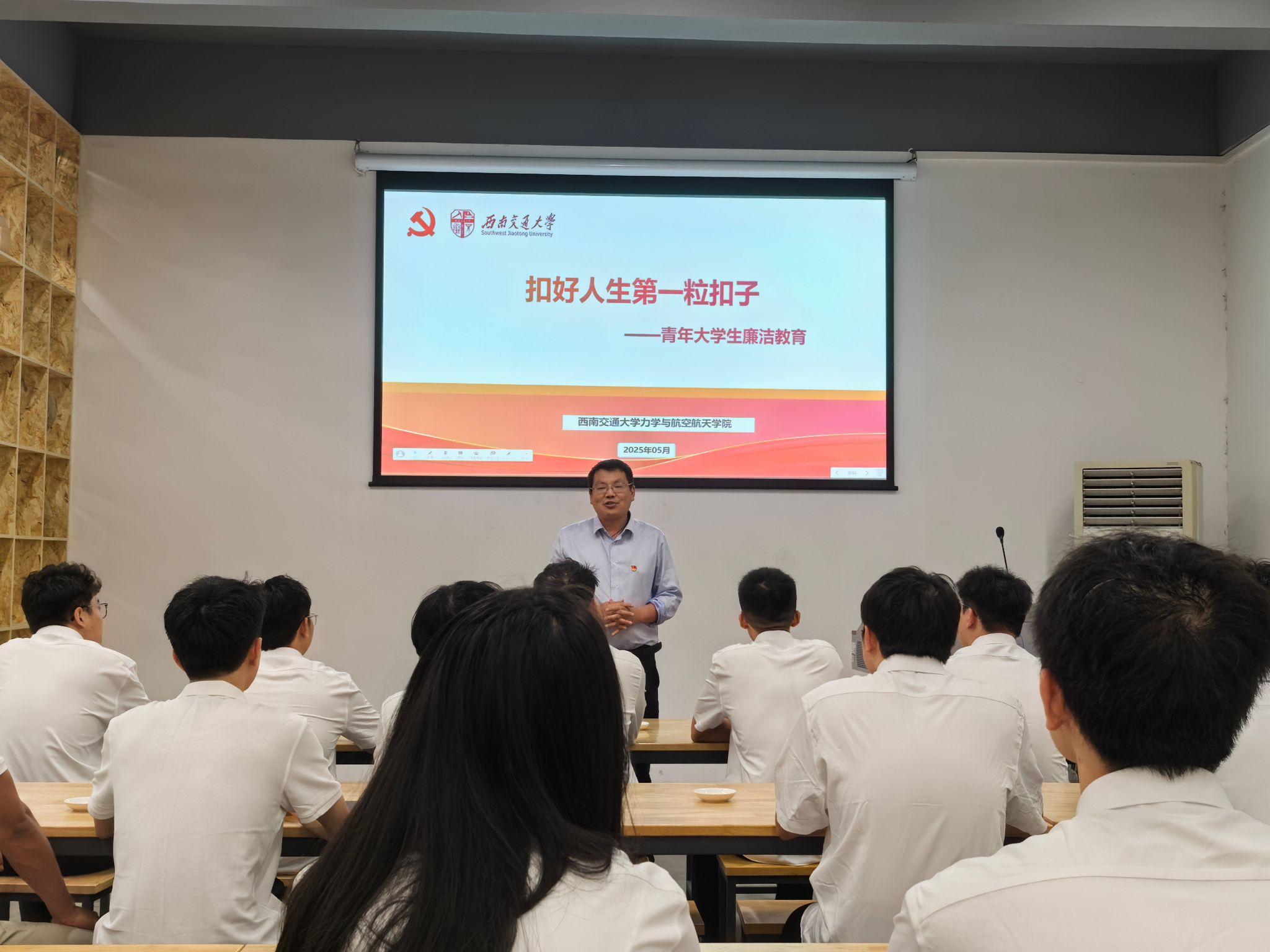活动第二项,李翔宇院长“以习近平总书记为榜样,扣好人生的第一粒扣子”给毕业生党员讲了最后一堂思政课。他以自身经历为引,忆起他学生时代,怀揣着对知识的炽热渴望,在艰苦的条件下仍刻苦钻研,那股子为了理想拼搏的劲儿从未消散。工作后,面对复杂的科研难题与教学困境,他始终以坚定的信念、积极的态度去应对。就像在研究过程中遭遇多次失败,却凭借着 “扣好第一粒扣子” 所蕴含的专注与坚持,一步步突破难关。他希望毕业生党员们,在踏入社会的新征程时,也能像他一样,从一开始就树立正确价值观,为未来的人生奠定坚实基础。