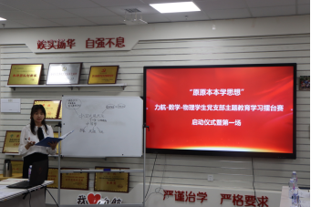 党委副书记孔祥彬宣布了计分结果:数学本科党支部尹懿获得本场擂台赛冠军。参加活动的师生共同合影留念。