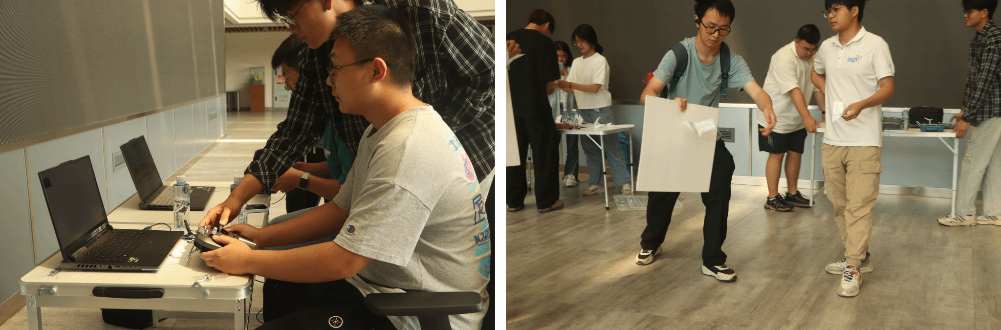 在第二个互动区域主要开展创意手工活动和飞行模拟体验,同学们在此折纸飞机、制作各类飞机模型。在工作人员的耐心指导下,大家依据自身能力和兴趣挑选合适的模型,充分发挥想象力,将一张张普通的纸张折成形态各异的飞机,在飞行模拟器体验区,同学们通过精准操作遥控器调整飞行姿态来模拟飞行;一旁的知识讲解区,社团成员结合航空模型剖析飞行原理,帮助同学们理解实践背后的科学奥秘。