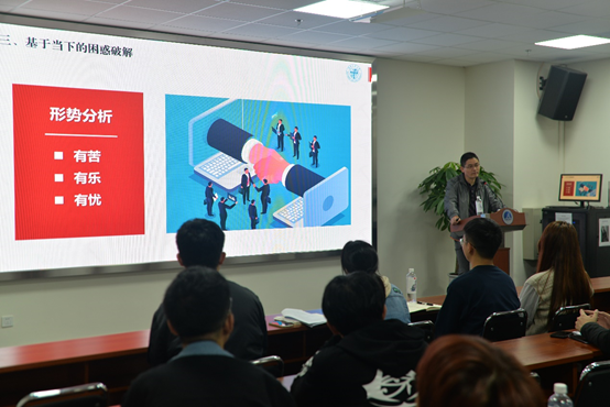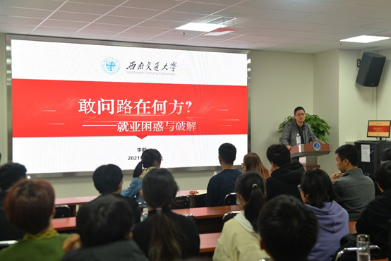 在X30224教室举行了第38期努力讲坛,学工部副部长李毅以“敢问路在何方?——就业困惑与破解”为题进行了精彩报告。学院党委副书记孔祥彬、团委书记杨婧、辅导员于红琴、田甜、古定翱以及学院本、研学生参加了讲坛。本次讲坛由泥视频