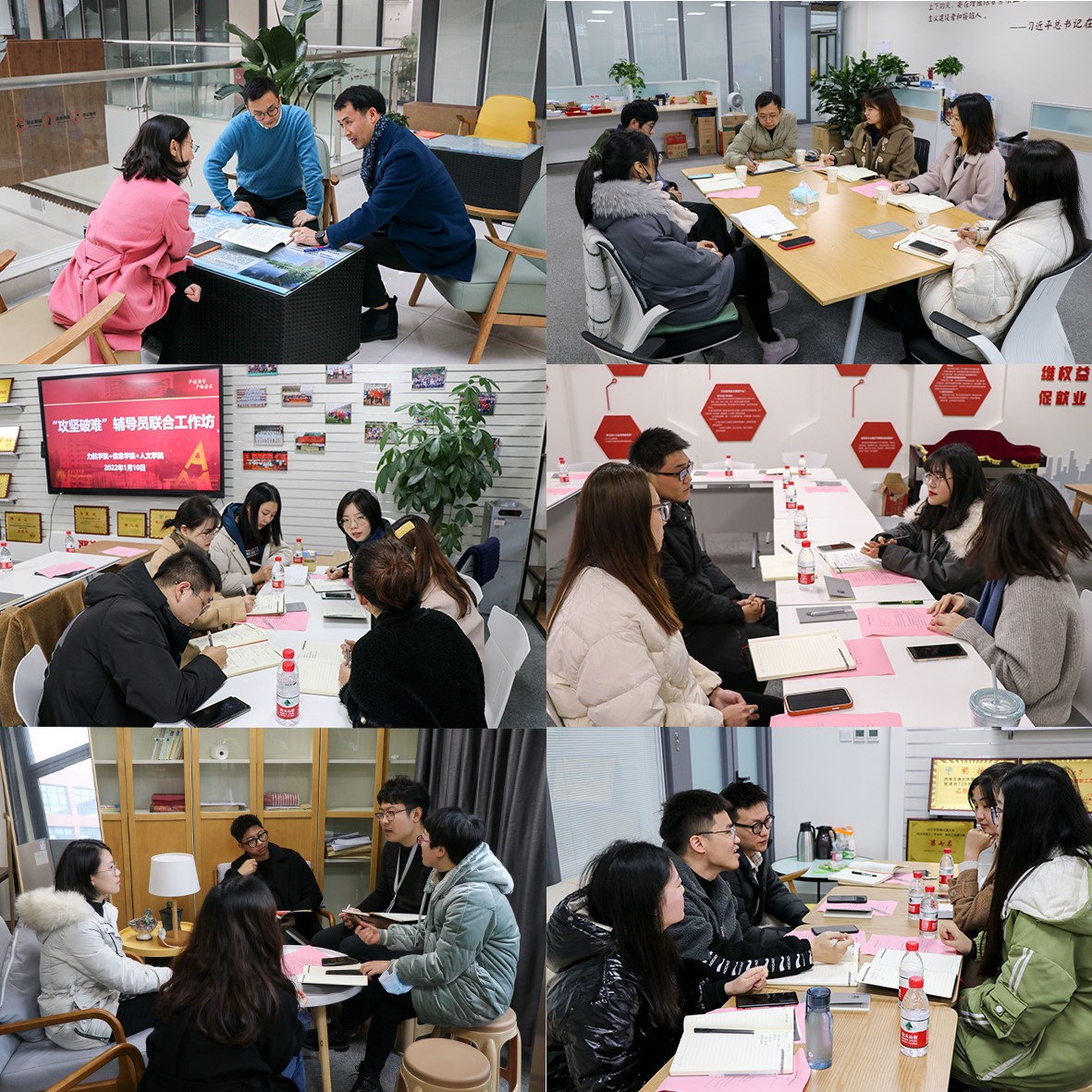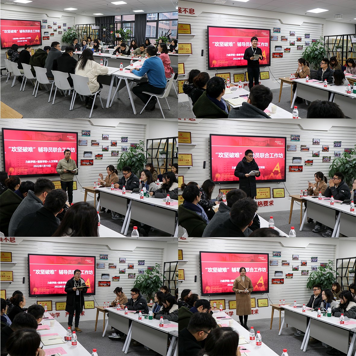 2022年1月10日上午10:00,力航、信息、人文学院“攻坚破难”辅导员联合工作坊在X30278召开,党委学生工作部部长高平平、泥视频