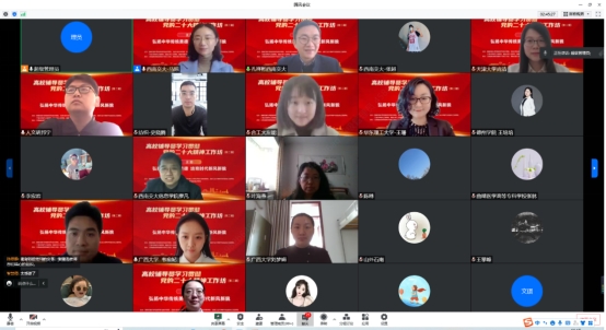 以及南昌大学人文学院、天津大学生命学院、华东理工大学艺术设计与传媒学院、合肥工业大学电气与自动化工程学院、广西大学电气工程学院共同主办,江西省教育系统胡邦宁名师工作室、西南交大先锋力党建工作室承办。论坛通过腾讯会议线上形式举行,200余名高校学生工作者参加了工作坊。工作坊第一阶段由西南交大孔祥彬主持,第二阶段由西南交大马琼主持,南昌大学胡邦宁做了总结点评。