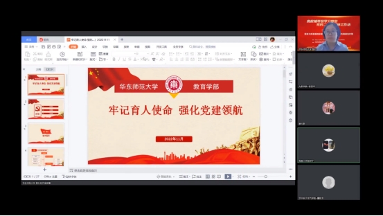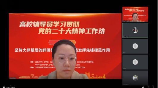 2022年11月13日,以“坚持大抓基层的鲜明导向,激励党员发挥先锋模范作用”为主题的第一期高校辅导员学习贯彻党的二十大精神工作坊通过腾讯会议在线上举办,全国有200多名辅导员在线参会。工作坊由泥视频