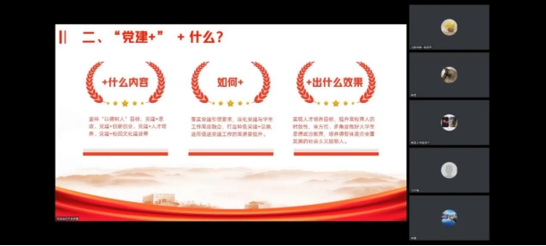 学生党建专项负责人张容华以“学生党建‘先锋力’行动构建与实践”为主题,介绍了学院从亮身份、列清单、搭平台、强监督、做评议五个方面构建学生党建先锋力行动的闭环体系。华中科技大学电气工程学院党委副书记罗珺进行了点评,她认为“先锋力”行动坚持了问题导向和任务导向,从学生学业等现实问题出发探索发挥学生党员先锋作用的长效机制,干实事、出实效,值得兄弟高校学习。