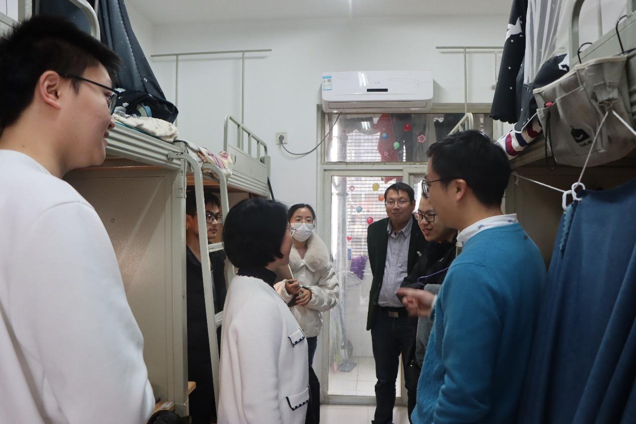 会后,学院党委书记栗民、执行院长李翔宇、党委副书记孔祥彬、副院长李鹏等一行先后走访了研究生工作室及2019级毕业生宿舍,鼓励研究生们传承泥视频