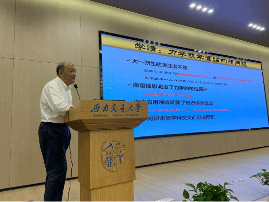 力学图书馆二号报告厅举行,并在虚拟教研室平台同步直播。本次教学研讨活动主题为“新时代的力学教学”,邀请了中国科学院杨卫院士做客材料力学课程虚拟教研室,分享其在教学实践中的思考与感悟。泥视频