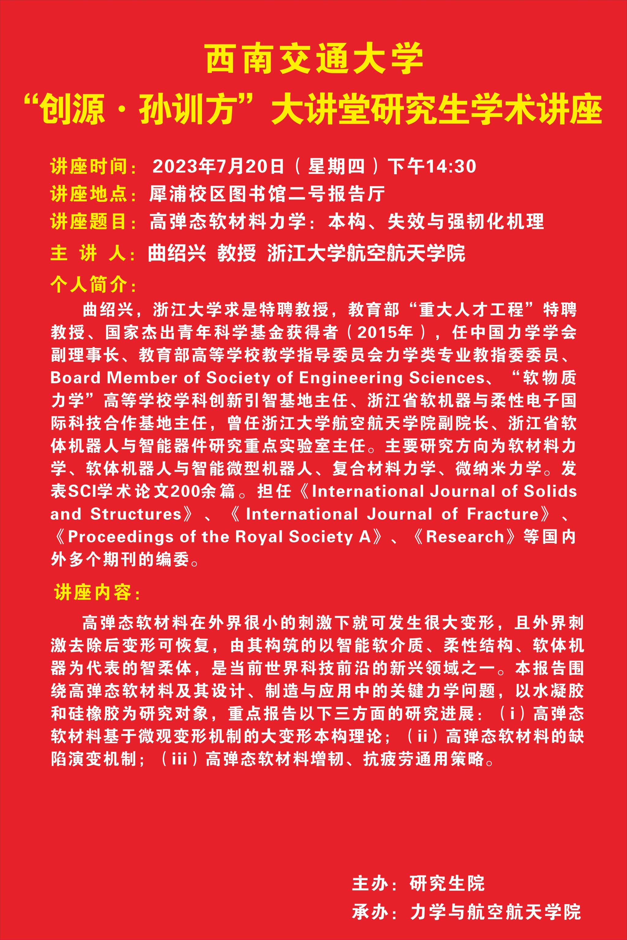上一条:创源 孙训方大讲堂学术报告会 下一条:纪念孙训方先生诞辰100周年力学青年教师学术交流沙龙第1期